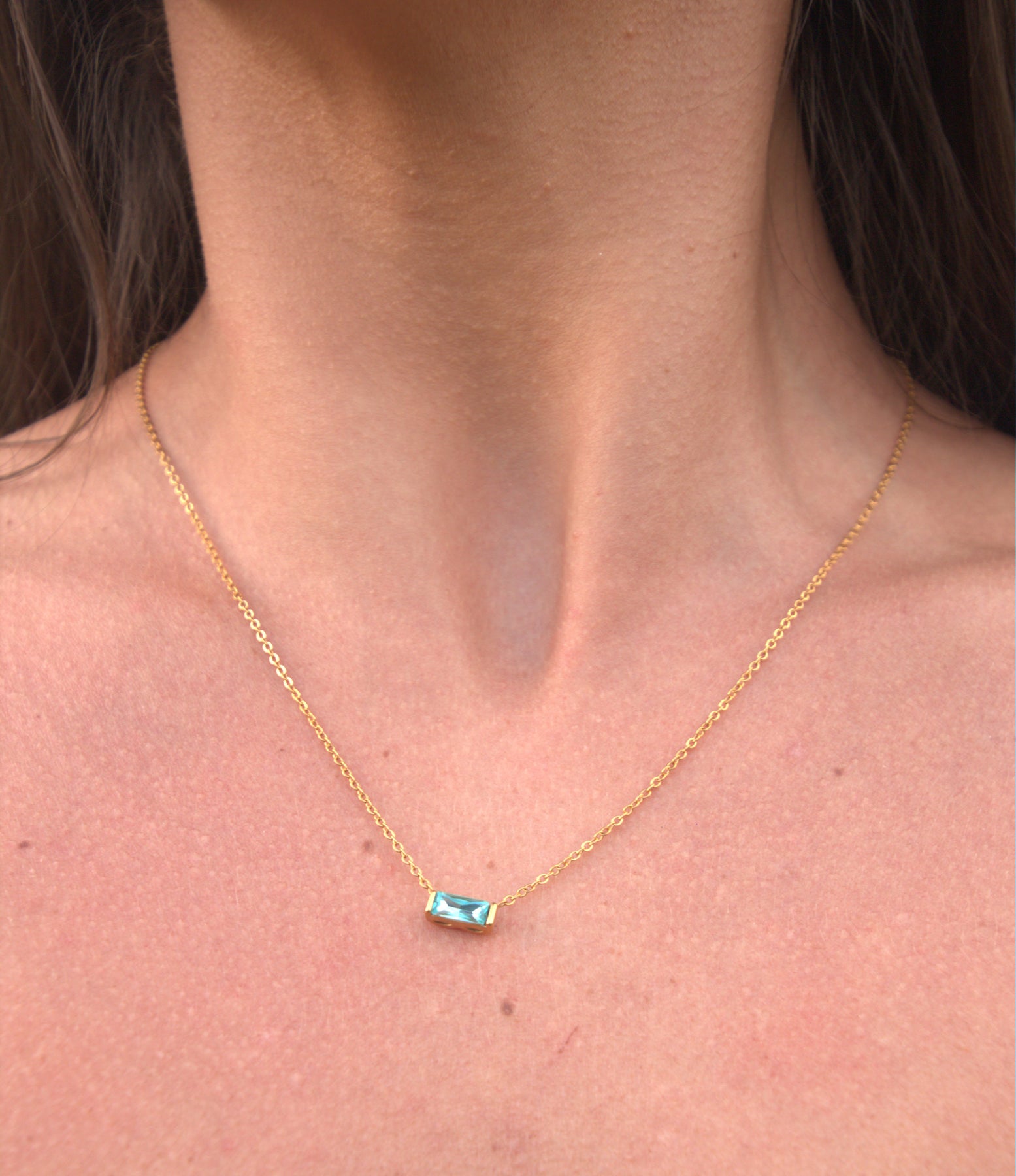 The December “Zircon” Xana Necklace symbolizes clarity, energy, and spiritual protection, with its icy blue sparkle reflecting winter’s calm and brilliance.
